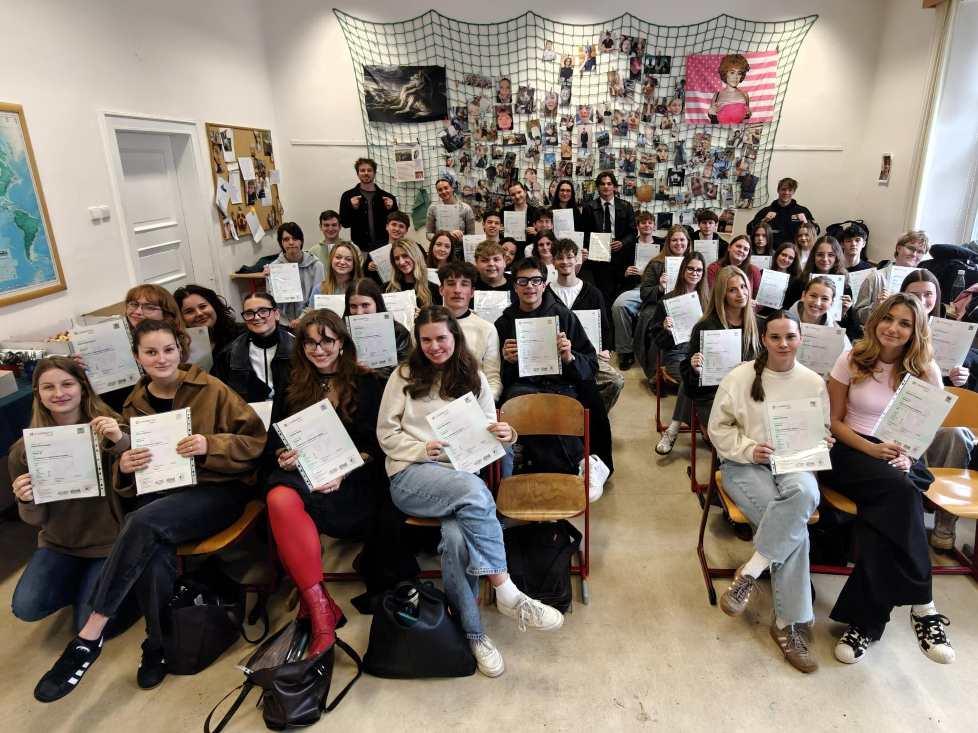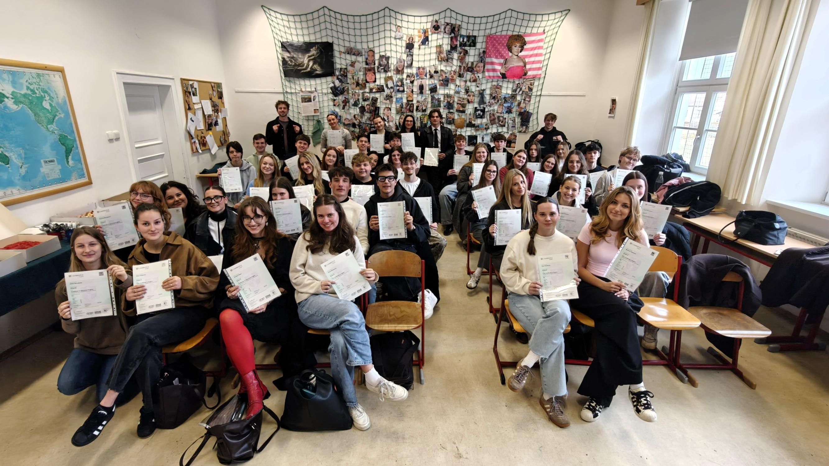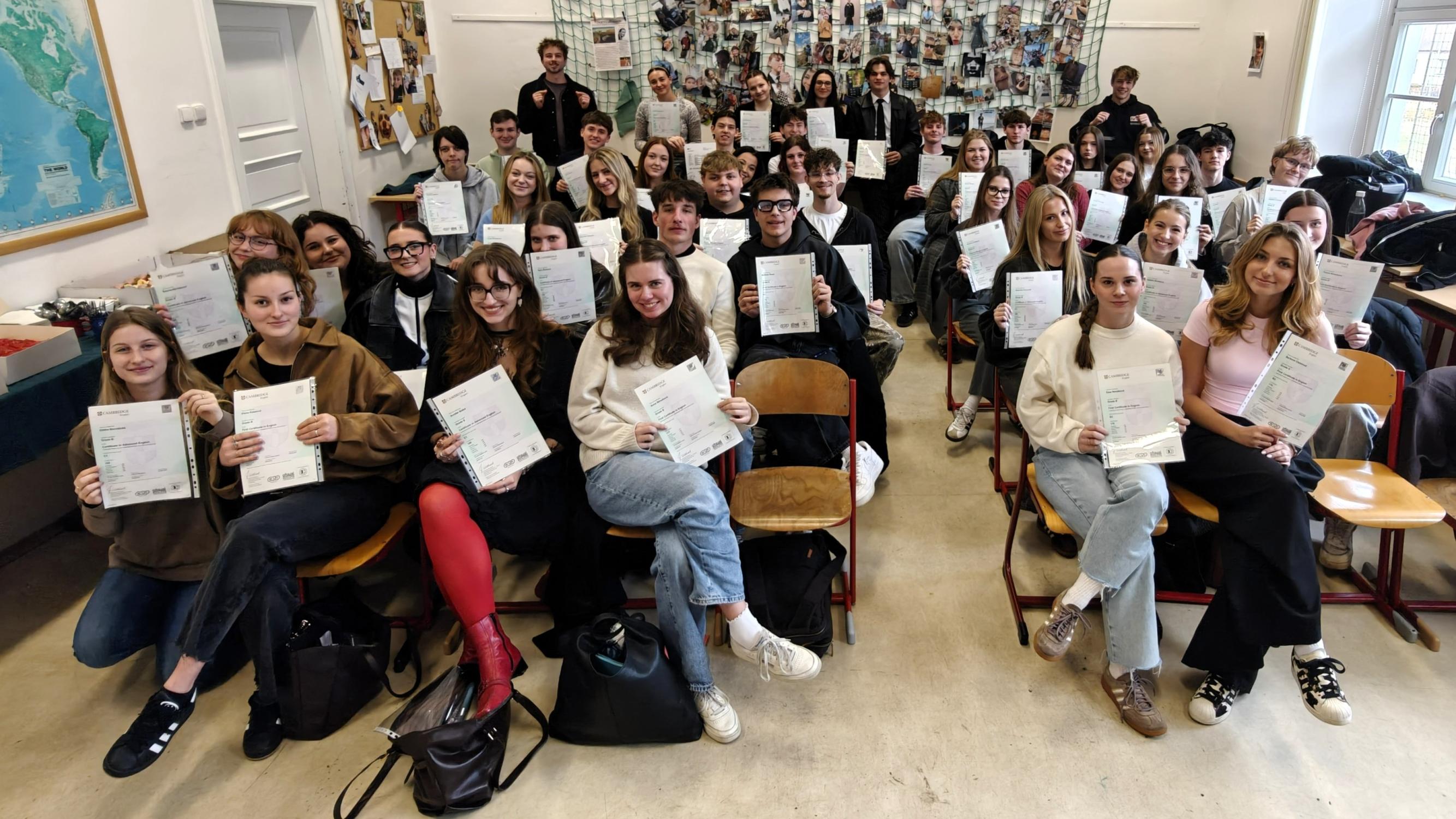 Jsme nadšení z vysoké úspěšnosti: všech 50 maturantů a maturantek získalo alespoň jeden jazykový certifikát! Sedm z nich úspěšně složilo mezinárodní certifikáty z němčiny i angličtiny na úrovni B2–C1. Jedná se o: Ludmilu Kozlovou, Veroniku Janouškovou, Jana Kofla, Milana Schořovského, Emu Novákovou, Annu Strouhovou a Veroniku Šimkovou.